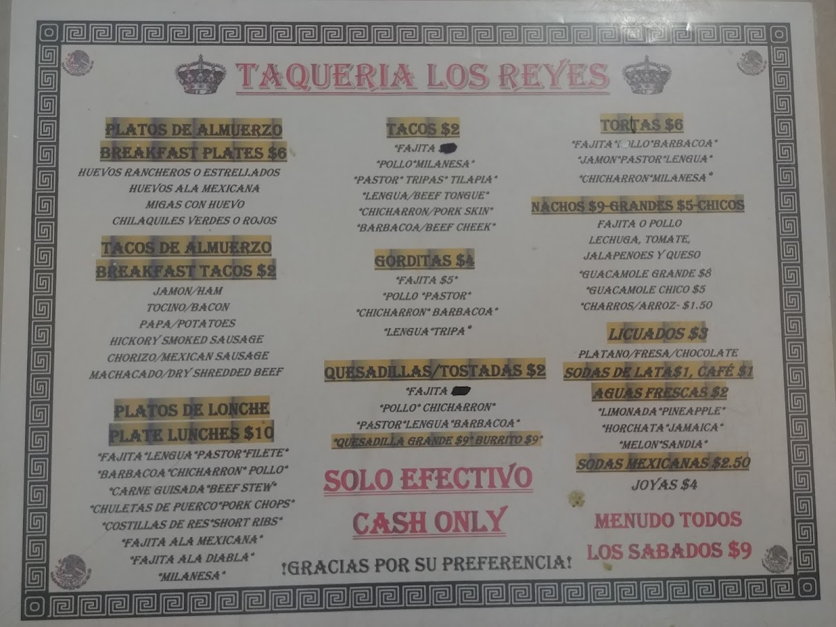 The menu at Taqueria Los Reyes offers a straightforward selection of classic Mexican dishes, perfect for those seeking hearty and authentic flavors in a casual setting. It features a variety of comforting bites like tender fajita tacos, flavorful chilaquiles served in red or green sauces, and satisfying options such as charro beans and tacos de barbacoa.
